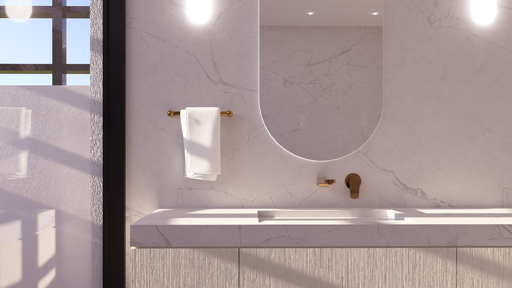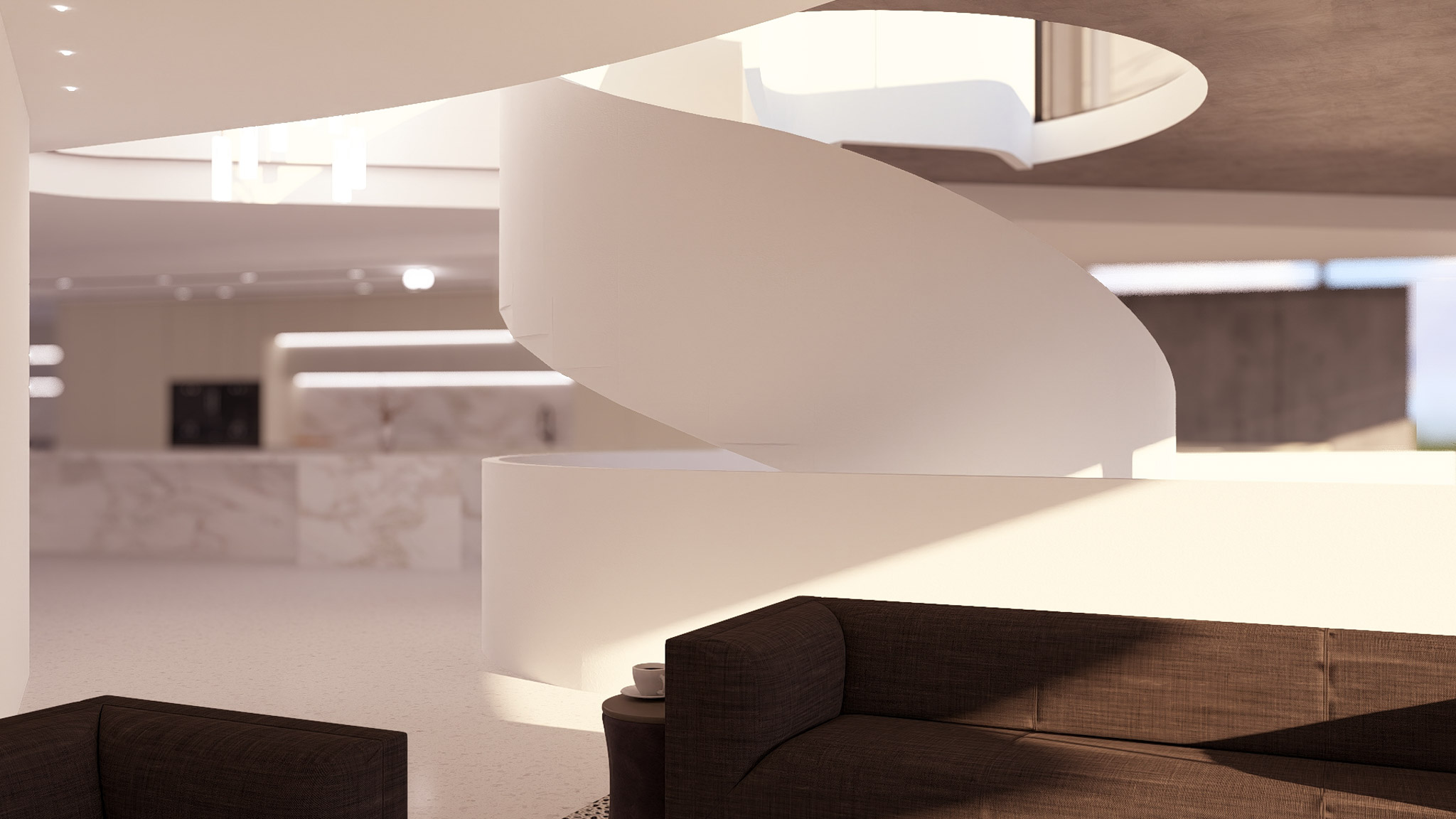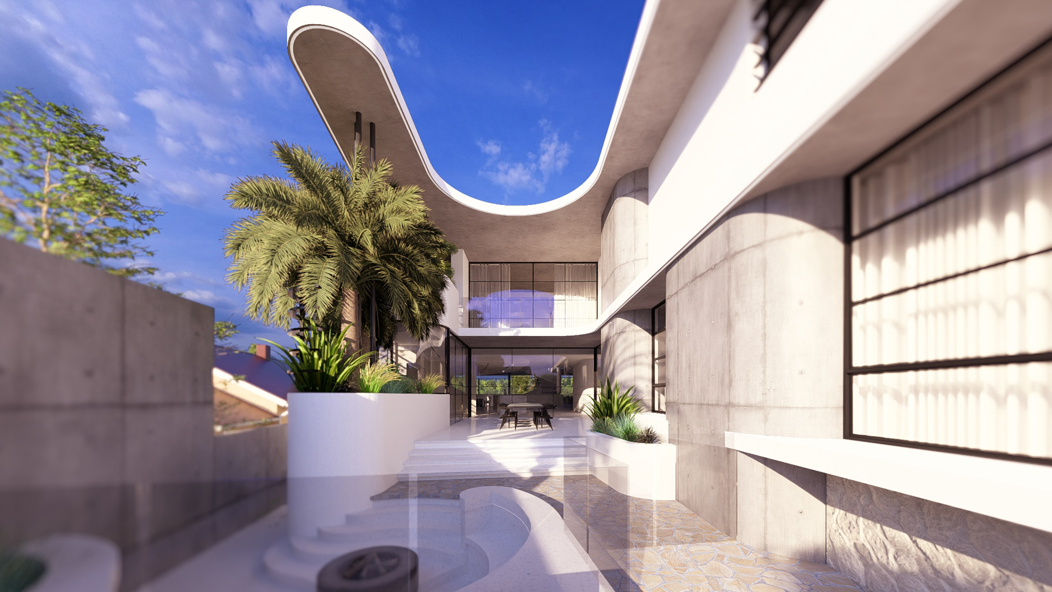 The indigenous people of this land, the Whadjuk Noongar, tell the story of the land’s creation through their Dreamtime stories. Galup, the traditional name for Lake Monger, translates to “place of fires”, a traditional camping and hunting ground. The Dreamtime creation story for Galup is the lake is the location where the creation serpent, the Waugal, emerged from the earth and re-entered to carve an underground channel to the Swan River. Extending the lot side boundaries to where they meet the Lake Monger shoreline, this subtle bend in the waters is replicated in the first-floor roof form. The proposed residence features a rising spiral staircase in the home’s entry foyer, reflective of the Waugal rising from the ground in creating the lake.